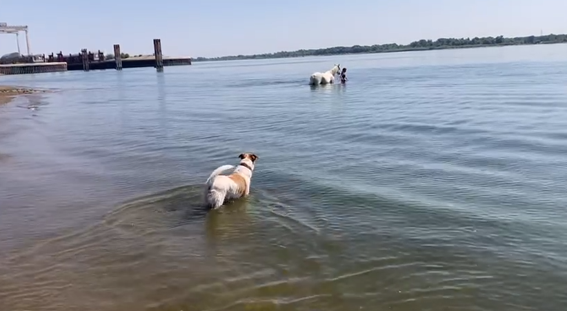 Кстати, обратите внимание сразу на Антохины штаны и хвост! Вот это я и планировала потом продемонстрировать крупным планом, вид сзади, как результат помывки чёрной Зары и её превращение в пушистого белого кобеля. Вторая половина тулова у Антохи скорее белая, чем конопатая.