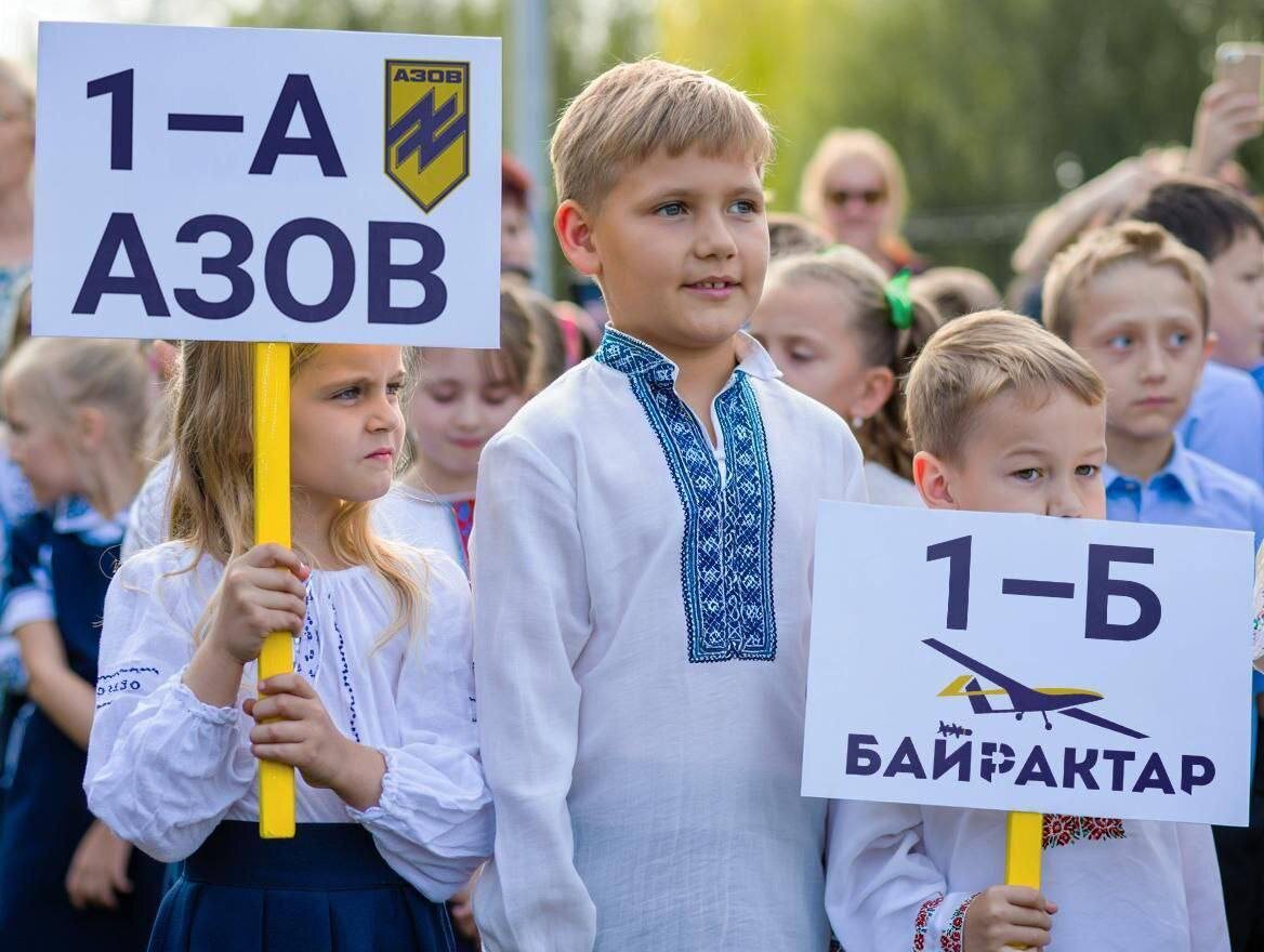 А вот и кадры со школьной линейки на Украине. Как вам названия классов? 👍 БайБайден. Подписаться