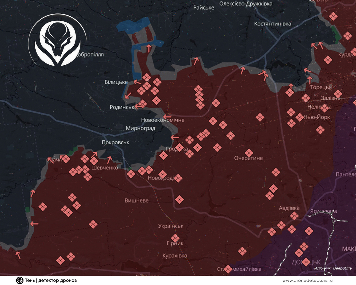 За последние трое суток линия фронта в районе Покровска и Доброполья остаётся одной из самых напряжённых. Здесь фиксируется рост активности украинских беспилотников. По данным экспертов, ВСУ всё чаще используют FPV-дроны с расширенным диапазоном частот — вплоть до 7.2 ГГц. Аналитики отмечают, что 7.2 ГГц активно тестируют и применяют штурмовые роты БПЛА ВСУ — в частности, подразделения в составе 68-й отдельной егерской бригады, а также роты беспилотников, приданные 110-й механизированной бригаде, действующей в зоне Покровска. Их задачи — прикрытие тактических действий, удары по технике и поражение колонн снабжения. Кроме того, отмечено активное применение ретрансляторов и связок «роев» дронов, что позволяет обходить зоны радиоэлектронного подавления. Такой подход обеспечивает массированные атаки по колоннам снабжения и укреплённым позициям, в том числе ночью. Особо напряжённая ситуация наблюдается в районе Золотого Колодезя. Здесь российские подразделения ведут бои за контроль над доро