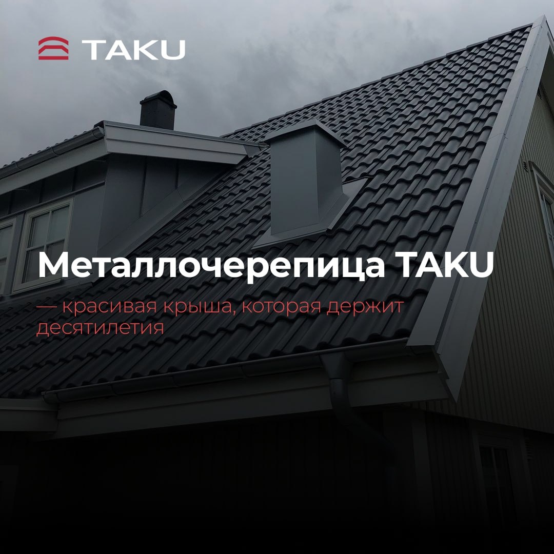 Металлочерепица TAKU — лучший выбор этой осени! 🍂 Дом всегда говорит о своём хозяине. И первое, что видят окружающие, — это крыша. Она формирует образ всего здания: либо простого и ничем не примечательного, либо солидного, стильного и внушающего доверие. Именно поэтому всё больше владельцев домов выбирают металлочерепицу TAKU. 🤮 Надёжность на десятилетия Металлочерепица от TAKU производится из высококачественной стали с инновационным защитным покрытием. Такая кровля не боится резких перепадов температур, града, снега и палящего солнца. Ваша крыша сохранит форму и цвет десятки лет! 🤮 Современный внешний вид Классический профиль металлочерепицы делает дом солидным, стильным и ухоженным. Широкая палитра оттенков позволяет подобрать цвет под фасад, окна и забор. Ваш дом будет выглядеть так, будто его только построили. 🤮 Лёгкость монтажа и экономия бюджета Идеальная геометрия листов ускоряет укладку и снижает расходы на установку. А благодаря лёгкому весу металлочерепицы не требуетс