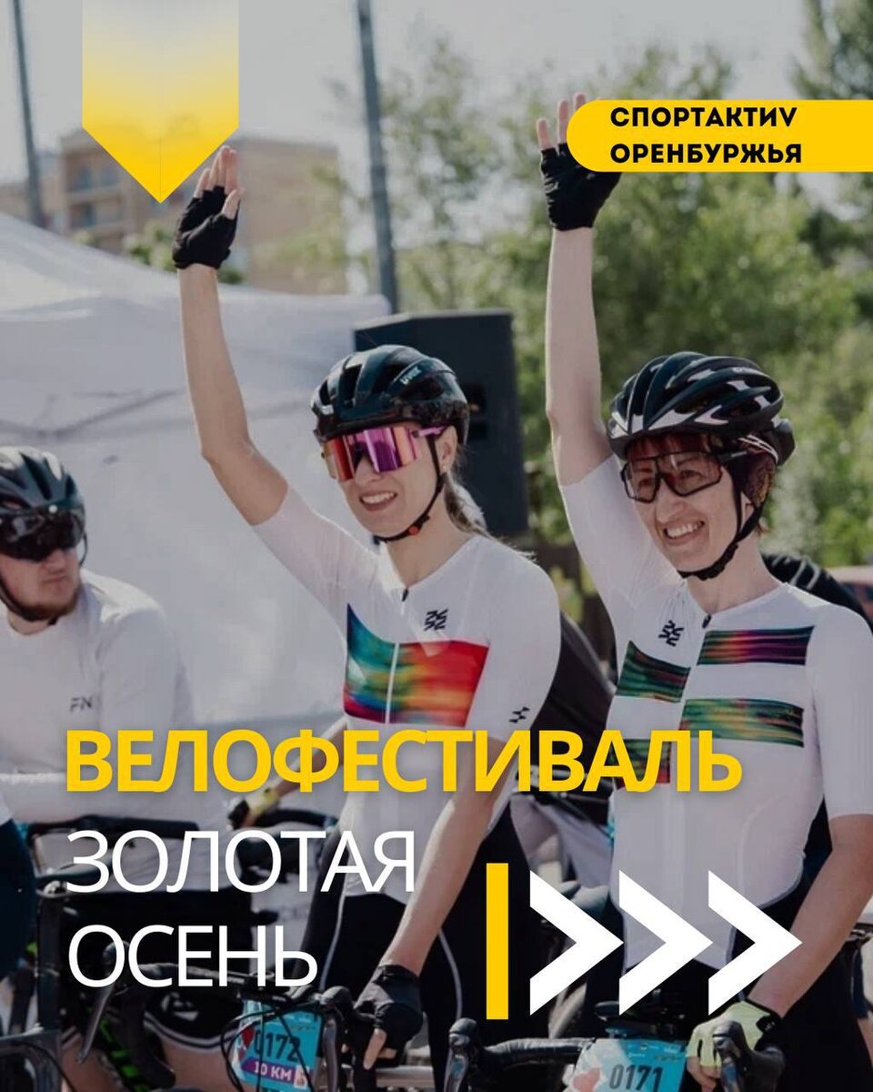 6 сентября пройдёт велофестиваль «Золотая осень» с центральной площадкой у стадиона «Оренбург» (ул. Новая, 17/1). Заезды также состоятся в муниципалитетах. Программа включает семейные, корпоративные заезды и велопарад (10 км). Требуется регистрация. Участники могут отмечаться через QR-коды сервиса «Я шагаю» на платформе «Активный гражданин». Фестиваль — часть проекта «СпортАктиV Оренбуржья» (14 мероприятий, для награды — участие в 11). Стартовые номера выдают в СК «Олимпийский» 5 сентября (17:00–20:00) и 6 сентября (14:00–15:00). Цель проекта — популяризация спорта и ЗОЖ.