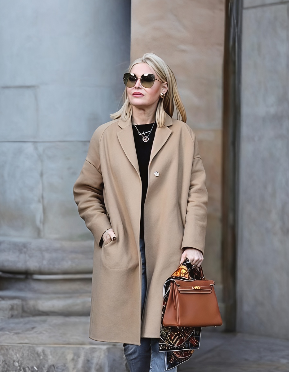 Классическое пальто станет основой вашего осенне-зимнего гардероба на долгие годы. Я всегда советую выбирать спокойные, благородные оттенки — глубокий чёрный, элегантный серый, тёплый бежевый или благородный тёмно-синий. С таким пальто можете смело идти куда угодно: на работу в брюках, на встречу с подругами в джинсах, в театр с платьем.