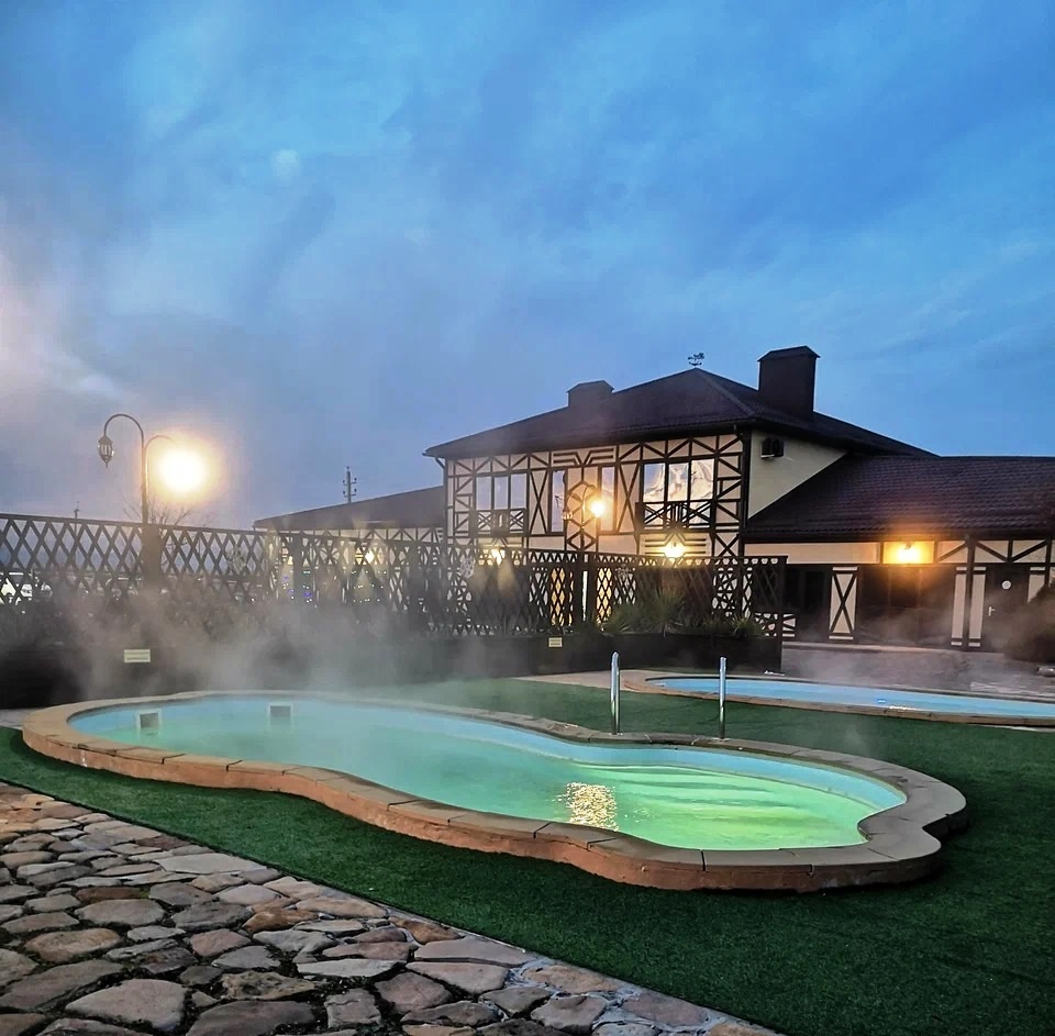 В предгорье Краснодарского края, в п. Мостовской расположены десять баз отдыха с горячими открытыми уличными бассейнами. Сразу надо понять, что это не дикие гейзеры в каменных глыбах, это бассейны, берущие воду со скважин глубиной до 2 километров. Скважины эти изначально были открыты в советское время и применялись в сугубо прагматичной форме – ими отапливали пятиэтажки и проводили горячую воду в квартиры. По сей день в 3 – 5 этажных домах посёлка используется эта вода в хозяйственных нуждах. Но вода эта не просто горячая, она имеет лечебный химический состав и особую «маслянистость». Если вы будете мыть руки такой горячей водой, то будет оставаться ощущение жирности на руках, как будто руки не до конца чистые. Так вот эта вода используется во всех термальных базах отдыха посёлка Мостовской, но так как бассейны большие и народу в них купается много, то всем базам приходится использовать дезинфицирующие реагенты с элементами хлора и т п. Получается, что лечебные свойства воды исчезают