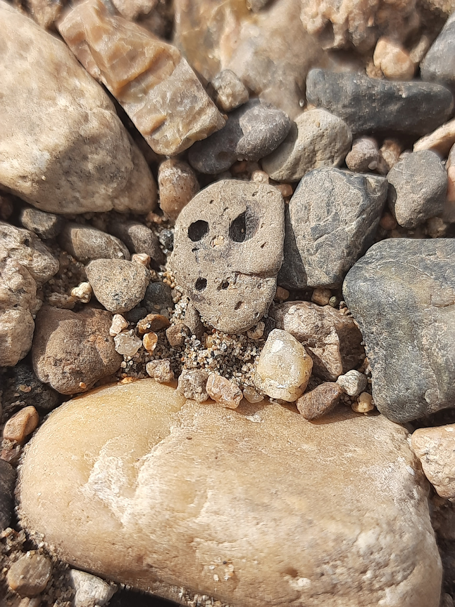Камушек интересный нашли у реки. Согласитесь, необычный. Сначала я заметила два глаза, которые выглядывали из песка. Немного освободив камушек из песчаного плена, можно было рассмотреть ещё пара дырочек меньшего размера. Камень был небольшой, но очень напоминал придудливую маску. Август 2025 г. #лето 📸 место съёмки: берег реки Чулым Ачинский район Красноярский край