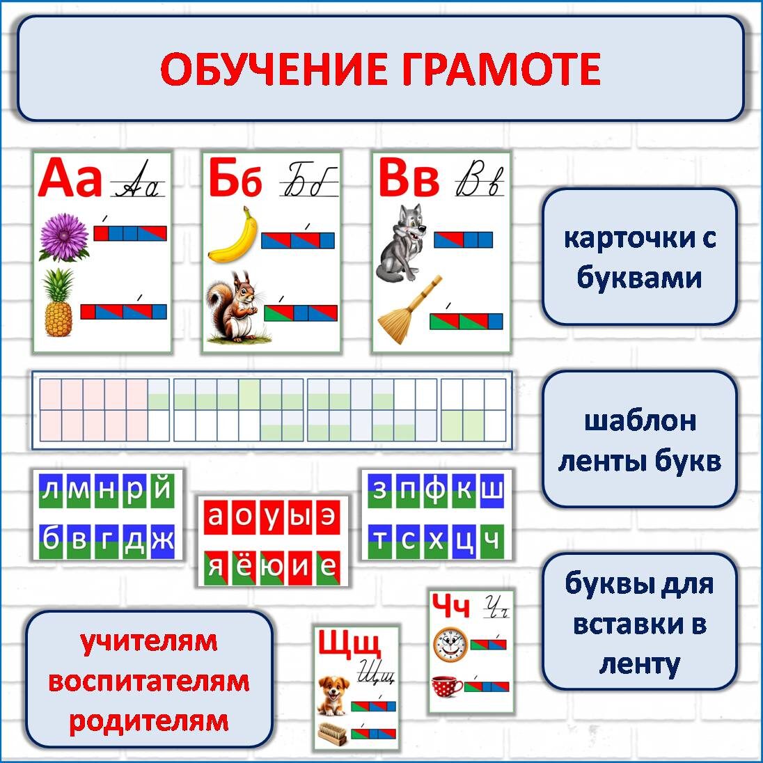 Наглядный материал «Карточки с буквами. Лента букв». Обучение грамоте.