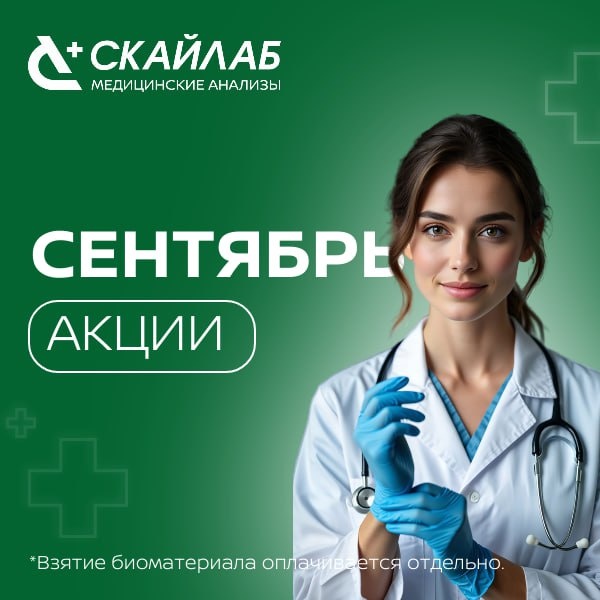 🍂 ГОТОВИМСЯ К ОСЕНИ ВМЕСТЕ! 🍃 С началом осени приходит время заботы о здоровье — своем и близких! СКАЙЛАБ дарит специальные сентябрьские предложения для всей семьи. Успейте воспользоваться выгодными условиями! 🌪 ДИАГНОСТИКА АНЕМИИ 7 лабораторных тестов за 1 060 рублей (вместо 2 120₽) Не пропустите риск анемии — действуйте на опережение! 🚸 СПРАВКА ДЛЯ РЕБЕНКА в детский сад, школу и бассейн 5 лабораторных тестов за 690 рублей! Позаботьтесь о справке для ребёнка уже сегодня — быстро, удобно и без стресса! 👵🏼👨🏻🦳 СКИДКА 20% ДЛЯ ПЕНСИОНЕРОВ каждый четверг Просто предъявите пенсионное удостоверение при визите в любой четверг. 😇 СКИДКА 10% ДЕТЯМ до 14 лет (включительно) С заботой о самых маленьких с выгодой и комфортом! *Взятие биоматериала оплачивается отдельно. Сроки проведения акций уточняйте в СКАЙЛАБ. 🔬 Медицинская лаборатория СКАЙЛАБ 📞 +7 (800) 550-56-06 💻 www.skylabkdl.ru #СКАЙЛАБ #Лаборатория #Здоровье #Акция #Скидки #Сентябрь