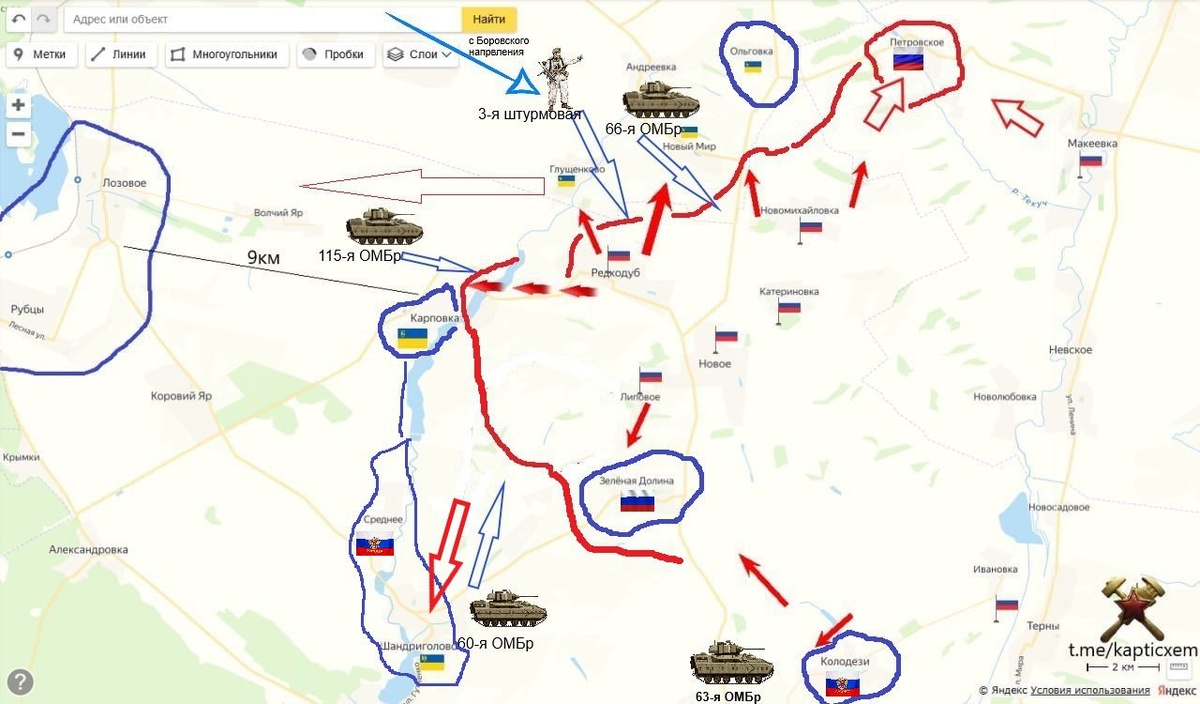 В ответ на пост Изюмское направление Заканчивается, более чем двухмесячное сражение на большой дуге Петровское-Новомихайловка-Редкодуб-Карповка-Среднее-Шандриголово-Колодези. Наша группировка "Запад"доламывает активную оборону противника, я бы даже сказал, сверхактивную оборону с попыткой перехватить атакующую инициативу, используя метод молота и наковальни. Молотом выступили 3-я штурмовая и 66-я механизированная накатывая на Редкодуб и Новомихайловку (в Редкодубе до сих пор бои, а к Новомихайловке мы практически прижались), а наковальня - Колодези и Шандриголово. И эту наковальню мы поломали-))) В середине августа взяли Колодези, в 20-х числах августа н.п.Среднее, взломав самый центр построения Карповка-Шандриголово, сейчас идут бои в этих населенных пунктах. И вишенка на тортике - ВС РФ вошли в Глущенково, это туда куда так нас не хотели все эти два месяца пускать ВСУ. А это фиаско. Ну а цель прежняя - Рубцы-Лозовое схемы и карты