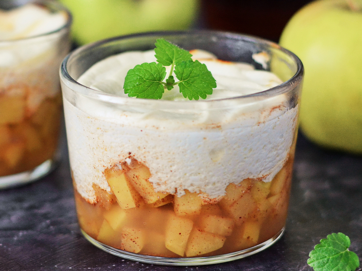 Мы все знаем, как после ужина рука сама тянется к печеньке или кусочку шоколада. А потом нередко мучает совесть… В основе этого десерта – обычные яблоки и мягкий творог, плюс пара ложек мёда для аромата. Ничего лишнего. Всё перемешали, закинули в духовку – и через 20 минут готово. На вкус – нормальное сладкое блюдо, а не «ПП-затычка». Калорийность – около 63 кКал на 100 г, то есть можно спокойно есть хоть после ужина, хоть на завтрак. Такой вариант подходит, когда семья требует вкусненького, а себе тоже хочется, но без вреда. В общем, и быстро, и дёшево, и полезно💯. Полный список ингредиентов – в конце⤵ Сначала берём 300 г яблок – лучше сладких сортов, чтобы без лишнего сахара. Режем мелким кубиком, кидаем в миску и добавляем 2 чайные ложки мёда и полчайной ложки корицы. Перемешиваем – запах сразу такой, что уже хочется есть. Берём порционные формочки. Выкладываем яблоки до половины высоты. Теперь очередь творога – нам нужно 300 г мягкого, пастообразного. Можно выкладывать просто