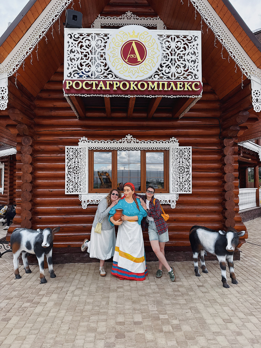 Во время чаепития можно попробовать безумно вкусный вафельный рожок со свежей сгущёнкой, упаковать йогурт в бутылочку и даже подоить корову. Правда, это макет коровы, но всё равно веселое развлечение не только для детей, но и для взрослых. Представили, что мы профессиональные доярки. Всё, бросаем работу блогером и уходим работать на завод!