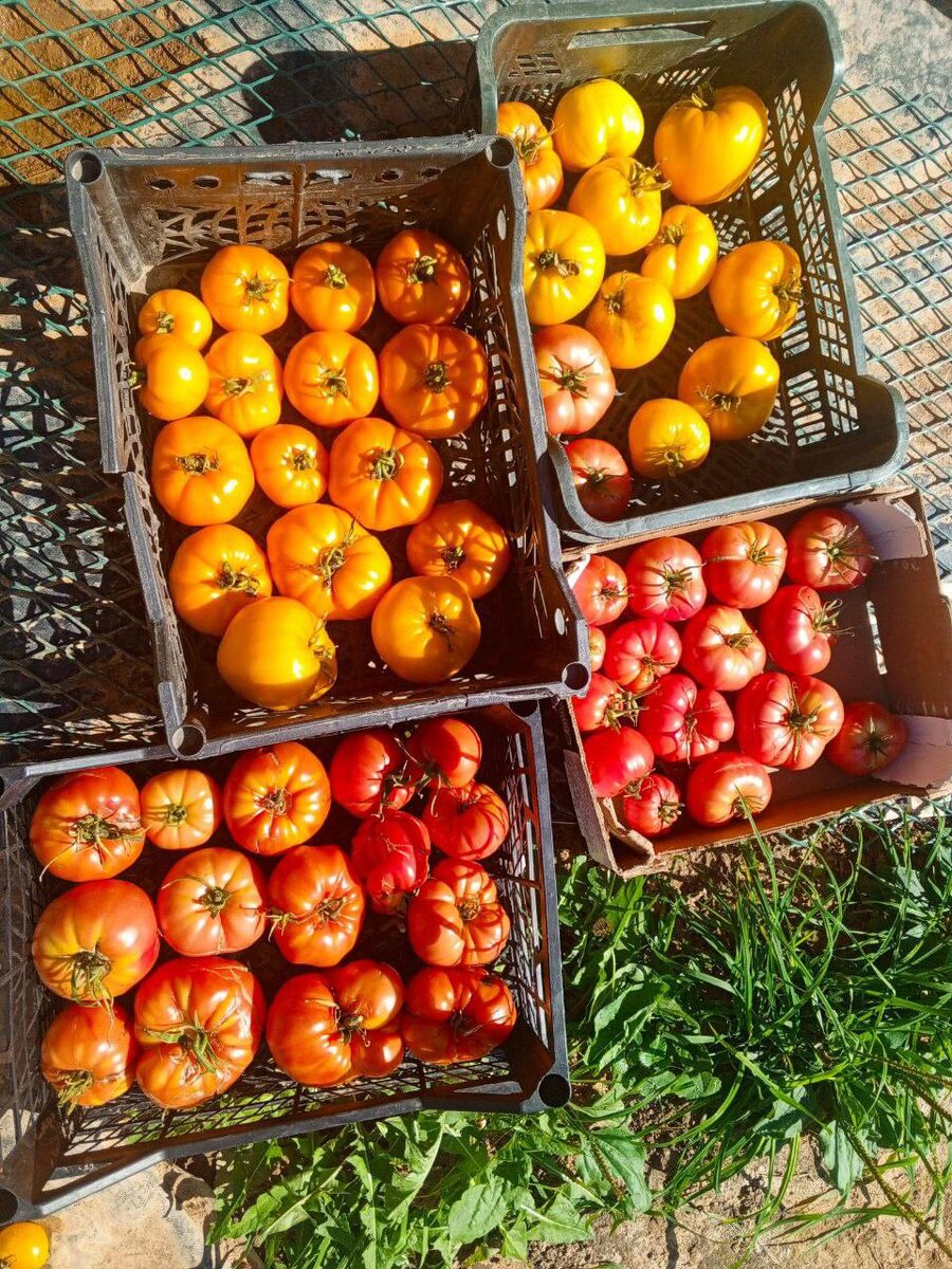- Томаты теряют вкус и сладость, завязи больше не растут. Снимаем всё, что дошло до молочной спелости, и отправляем дозревать в ящики.