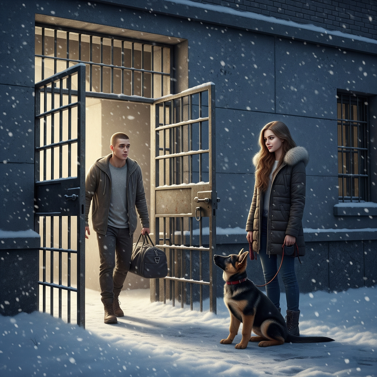 У ворот колонии стояла Алина. В тёплой куртке, с небольшой сумкой. Рядом — щенок овчарки на поводке.