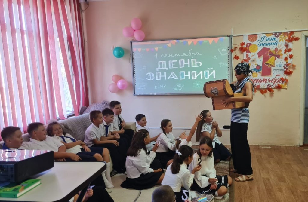 День знаний – это волнующий момент, символизирующий начало нового учебного года, когда учащиеся с надеждой и ожиданием шагают на порог школы. Это не просто дата в календаре, а целая эпоха, когда открываются горизонты для познания, творчества и самореализации. В этот день, наполненный предвкушением новых знаний, Романовский детский отдел распахнул свои двери для учеников 4 класса Романовской СОШ, пригласив их в увлекательное путешествие в страну Знаний. Библиотекари, словно опытные проводники, встретили ребят и погрузили в атмосферу приключений. А кто же мог лучше всего провести детей по неизведанным тропам знаний, как не сам пират? Появление грозного, но обаятельного пирата по кличке «Чёрный Клык» сначала вызвало у детей легкое волнение, но его слова о том, что знание – это скучно, быстро сменились азартом, когда он предложил ребятам принять участие в захватывающей «Пиратской эстафете знаний». Первым испытанием стала игра «Сортировка сокровищ». Перед юными искателями приключений стояла