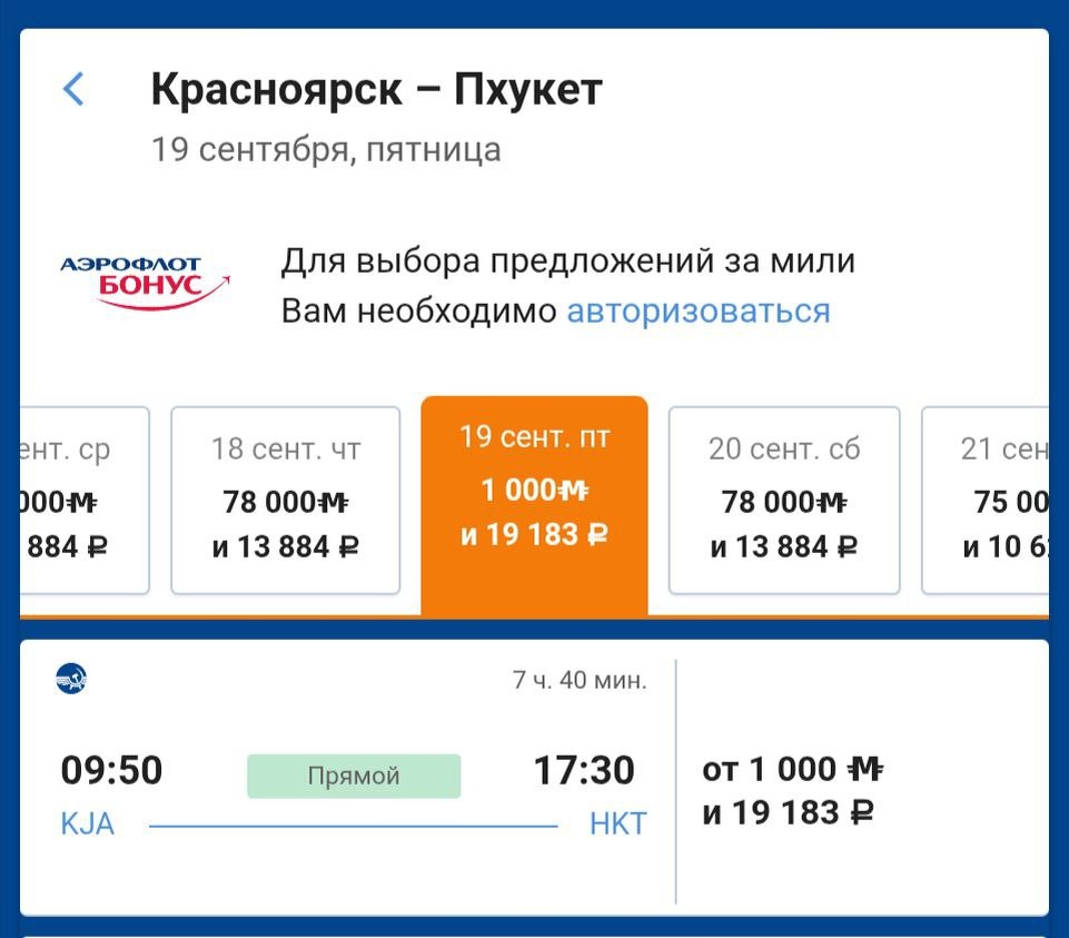 У "Аэрофлота" все ещё идёт мильная акция в Таиланд на сентябрь. Билетов обратно гораздо больше, чем туда.