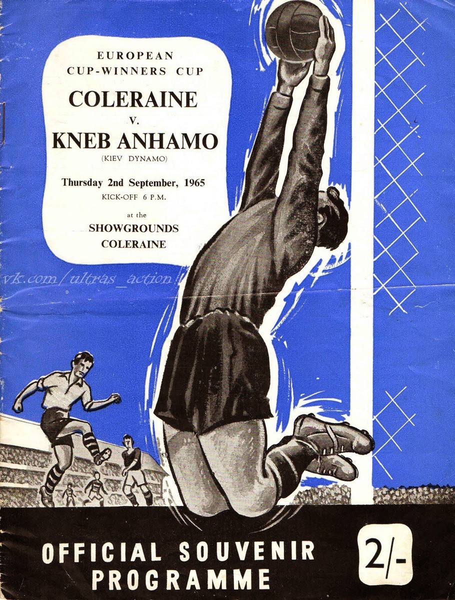 2 сентября 1965 года – знаменательная дата в истории отечественного футбола. В этот день советский клуб провел первый матч в еврокубках – киевское «Динамо» в 1/16 финала Кубка обладателей кубков разгромило в Северной Ирландии местный «Колрейн» со счетом 6:1. Памятный первый гол на 14-й минуте забил полузащитник Андрей Биба. Во втором тайме он оформил дубль, как и Виктор Серебряников. Еще по разу отметились на табло Олег Базилевич и Виталий Хмельницкий. И только при 0:6 хозяева смогли разок распечатать ворота Виктора Банникова. Вспоминает Виктор Серебряников: «Сначала нам североирландский «Колрейн» попался. Отгрузили им за тайм в гостях четыре мяча, Главный тренер Виктор Маслов говорит: «Ребята, хватит. Народ в Киеве не придет». Наш заработок зависел от сбора. Если стадион полный – премия 800 рублей. Следом мы вынесли «Русенборг». В Норвегии при счете 4:1 Маслов со скамейки носовым платком махал – мол, больше не забивайте». Почему же это знаменательное событие произошло только в 1965 го