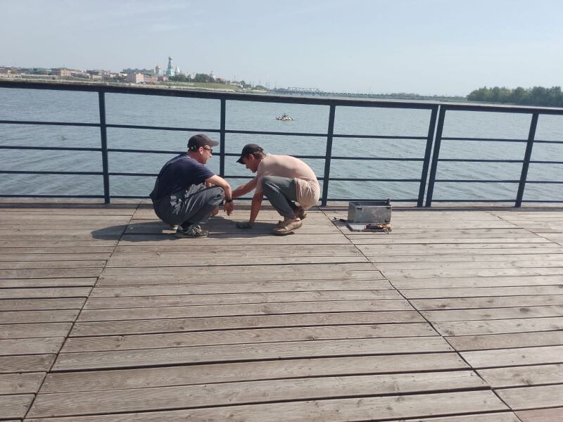 К ремонту плавающего фонтана на реке Сызранке приступили сегодня сотрудники МКУ «Благоустройство». Около месяца назад сызранцы обратили внимание на то, что фонтан, одно из главных украшений монастырской набережной, вновь не работает. Сегодня на монастырскую набережную пришла бригада сотрудников, с которой пообщался корреспондент портала «Маленькая Сызрань». Как сообщили работники, пока они не могут точно сказать, в чем причина поломки. Возможно, неисправен кабель, возможно, насос. В данный момент они заняты диагностикой оборудования. Кабель демонтирован, выложен на просушку. После чего они смогут приступить к диагностике состояния кабеля. Тут же рабочие вскрывают деревянный настил для того, чтобы проверить работоспособность остального оборудования этой установки.