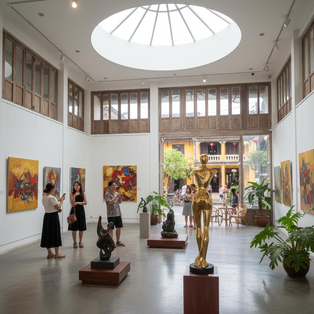 Современное искусство и галереи Хойана представляют собой динамичную смесь традиционных мотивов и современных тенденций, создавая уникальное культурное пространство, которое привлекает туристов и авторов со всего мира. В Хойане много галерей и арт-студий, расположенных преимущественно в старом городе. Среди них выделяются галерея 155 на улице Транфу, известная своей коллекцией местных работ, и Музей Галереи Искусств Драгоценного Наследия, открытый во 2-й половине 2010-х, который предлагает экспозиции, посвящённые 54 этническим группам Вьетнама и их традиционным costumes и ремёслам. Хойан активно поддерживает обмен творческими идеями между вьетнамскими художниками и зарубежными коллегами. Например, программа «Уличный арт-обмен художников Ёнган (Корея) в Хойане» стимулирует сотрудничество и культурный диалог, благодаря чему появляются выставки, сочетая вьетнамскую традиционную эстетику с современным искусством из других стран. В городе регулярно проходят выставки живописи, скульптуры,
