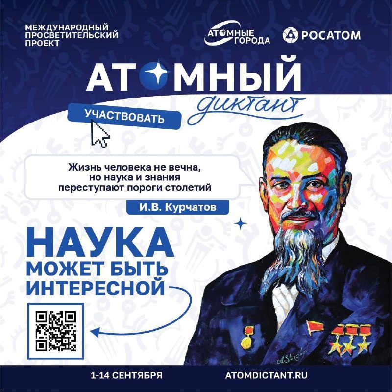 80 атомных лет: проверь свои знания ❗️В этом году исполняется 80 лет отечественной атомной промышленности. Эта отрасль на протяжении всего своего существования играла магистральную роль в развитии государства и продолжает ее играть. ➡️Атомный диктант – ежегодный международно-просветительский проект, организуемый Союзом «Атомные города» при поддержке Госкорпорации «Росатом» с целью популяризации научных знаний и повышения общественного интереса к вопросам атомной энергетики, экологии, безопасности и истории атомной отрасли. 🔹Принять участие может любой желающий вне зависимости от возраста, образования или места жительства. 📅В 2025 году диктант пройдёт с 1 по 14 сентября. Пройти его можно: 🔹Онлайн — на официальном сайте в личном кабинете участника. Необходимо заполнить анкету участника перед началом. 🔹Очно — на специально организованных площадках. 🔸Очная презентация проекта «Атомный диктант» 📅5 сентября, 15:00 📍Российская государственная библиотека имени В.И. Ленина (Воздв