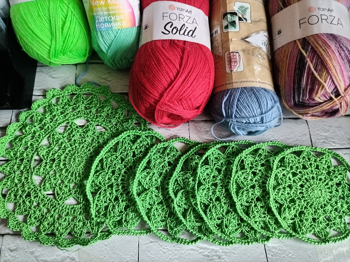 Первое, что я связала в авгу, те, это комплект салфеток из Пехорки Ажурной, крючок 1,25. Ушло на комплект 47г Затем были женские носочки, форма с кидмохером и Морозко. Размер 36, спицы 2,5, расход 57г После носочков я связала ксодиган, размер 48-50, пряжа Ализе Альпака Роял, спицы 4, расход 497г Четвёртое изделие в августе - снова носочки женские, размер 37, пряжа Аделия Джейк, спицы 2,5, расход 48г Затем я связала детскую манишку, смесовка пряж Вита бриллиант и Альпафина, расход 78г И в завершении месяца - кардиган, размер 48-50, пряжа Ализе альпака Роял, спицы 4, расход 597г Итого в августе извязано 1кг276г Спасибо, что прочитали статью до конца! Всем мира и добра! Всем пока пока👋