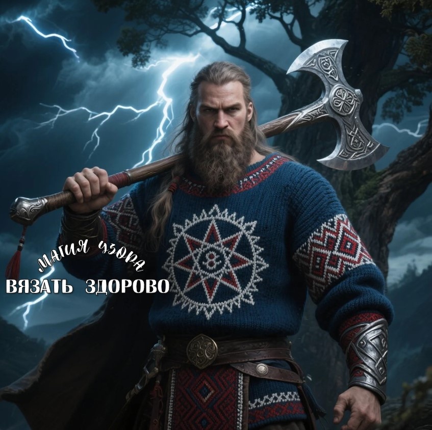 Секира Перуна - символ справедливости и защиты! ⚔️🔥 В вязании ее воплощают через зигзагообразные узоры, имитирующие молнии! ⚡🌟