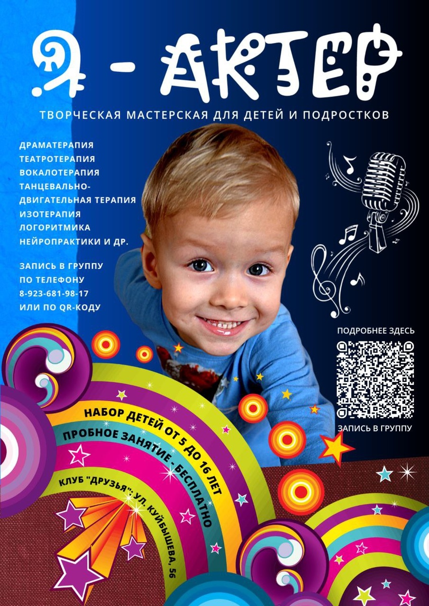 🎭 Драматерапия для юных творцов! Вашему ребенку от 5 до 16 лет? Он активный, изобретательный, творческий, артистичный, любит фантазировать, хочет создавать волшебные миры и проживать захватывающие истории? Детская творческая мастерская "Я - Актер" с применением психологического метода драматерапии открывает двери в мир безграничных возможностей для вашего ребенка! Что такое драматерапия? 🎭 Это не просто театральный кружок. Это уникальный метод развития личности через игру, движение, импровизацию и, конечно же, театр. На занятиях мы будем использовать силу искусства, чтобы помочь детям лучше развиваться, правильно справляться с эмоциями и делать их детство еще более счастливыми. На занятиях они: ⭐ Раскроют свой творческий потенциал. Задача занятий: научиться мыслить нестандартно, придумывать собственные истории и воплощать их в жизнь. ⭐ Преодолеют страхи и неуверенность. Задача занятий: почувствовать себя уверенно и свободно, выступая перед публикой. ⭐ Разовьют коммуникативные