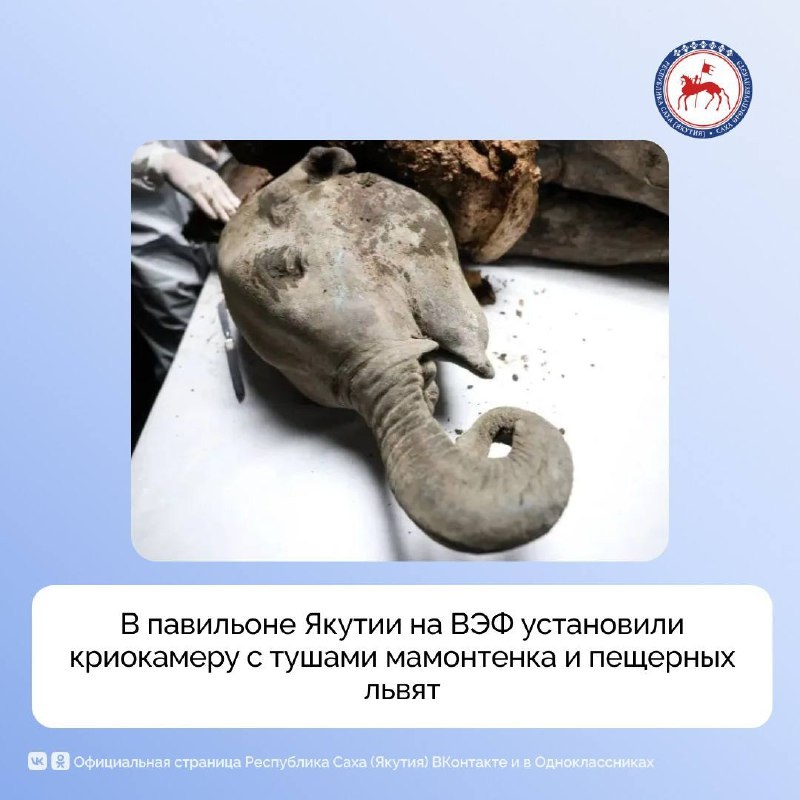 Павильон Якутии представит на выставке «Улица Дальнего Востока» Восточного экономического форума, туши найденных на территории республики мамонтенка Яны и пещерных львят Бориса и Спарты. Они помещены внутрь специальной криокамеры, сообщает ТАСС. «Восточный экономический форум во Владивостоке пройдет в юбилейный десятый раз. И мы задумались: как же Якутия в этом году удивит своим павильоном? Поступило предложение повезти туда мамонтенка Яну, который произвел фурор в мире. За первые сутки публикации о презентации Яны собрали около 19 млн просмотров», - сообщил ректор Северо-Восточного федерального университета Анатолий Николаев. 🔹 Тушу мамонтенка обнаружили в июне 2024 года на термокарстовом провале Батагайка. 27 марта в Северо-Восточном федеральном университете прошел международный научный семинар, в ходе которого ученые провели вскрытие туши мамонтенка. 🔹 На данный момент Яна, предположительно, самая древняя по возрасту находка среди шести ранее обнаруженных в мире детенышей мамон