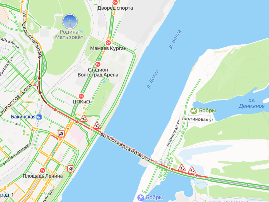Волгоградский мост встал в пробку в обе стороны. Затор по одной полосе начинается от ТРК «Мармелада» и длится до въезда на мост. В обратную сторону — от Бобров, через весь мост и до ТРК «Европа Сити Молл».