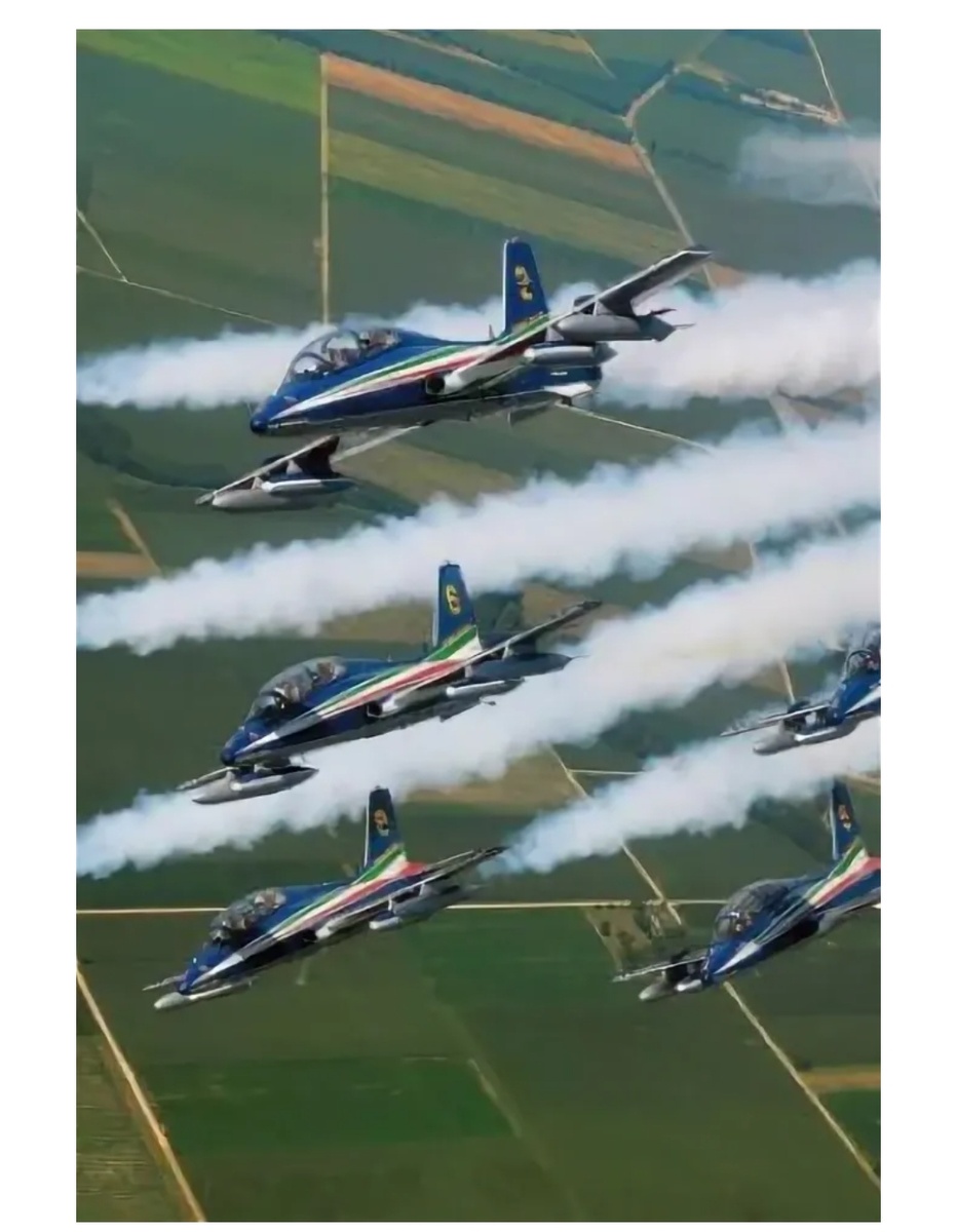 На стоянке, отполированной до зеркального блеска, стояли они. Десять «Аэрмакки». Не самолеты — скальпели. Инструменты для рассечения неба. Безупречные линии, красно-бело-зеленая ливрея, кричащая о национальной гордости. «Фреччи Триколори». Трехцветные стрелы.