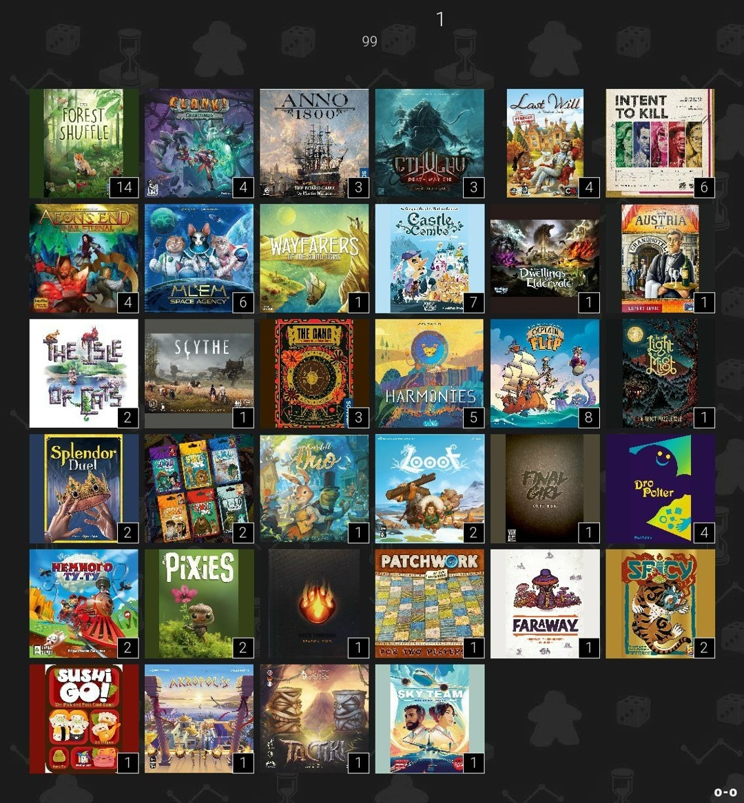 В этом месяце сыграли 99 партий в 34 игру! Из них 15 новых игр + 5 новых опробованных дополнений.