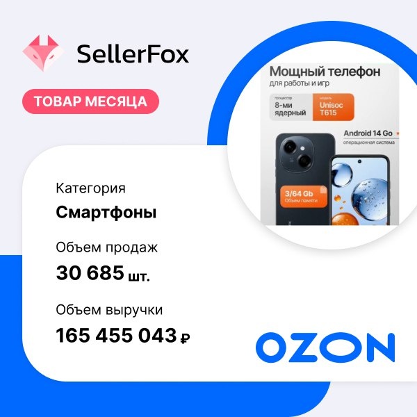 Быть на связи. Смартфон Tecno Spark Go стал лидером по количеству продаж в категории "Смартфоны" на Ozon за последние 30 дней. Товар за месяц приобрели более 30 тысяч раз на общую сумму свыше 165 млн рублей. По данным аналитиков, за август 2025 года к новому учебному году на Ozon, Яндекс.Маркет и Wildberries купили 445 657 смартфонов и 81 146 планшетов за 11,7 млрд и 1,2 млрд руб. соответственно. При этом за август прошлого года на тех же маркетплейсах было продано 633 605 смартфонов за 15,8 млрд руб. и 100 976 планшетов за 1,7 млрд руб. Таким образом, в совокупности падение продаж этих типов электроники составило почти 29% в штуках и 26% в деньгах, вопреки сезонности периода.