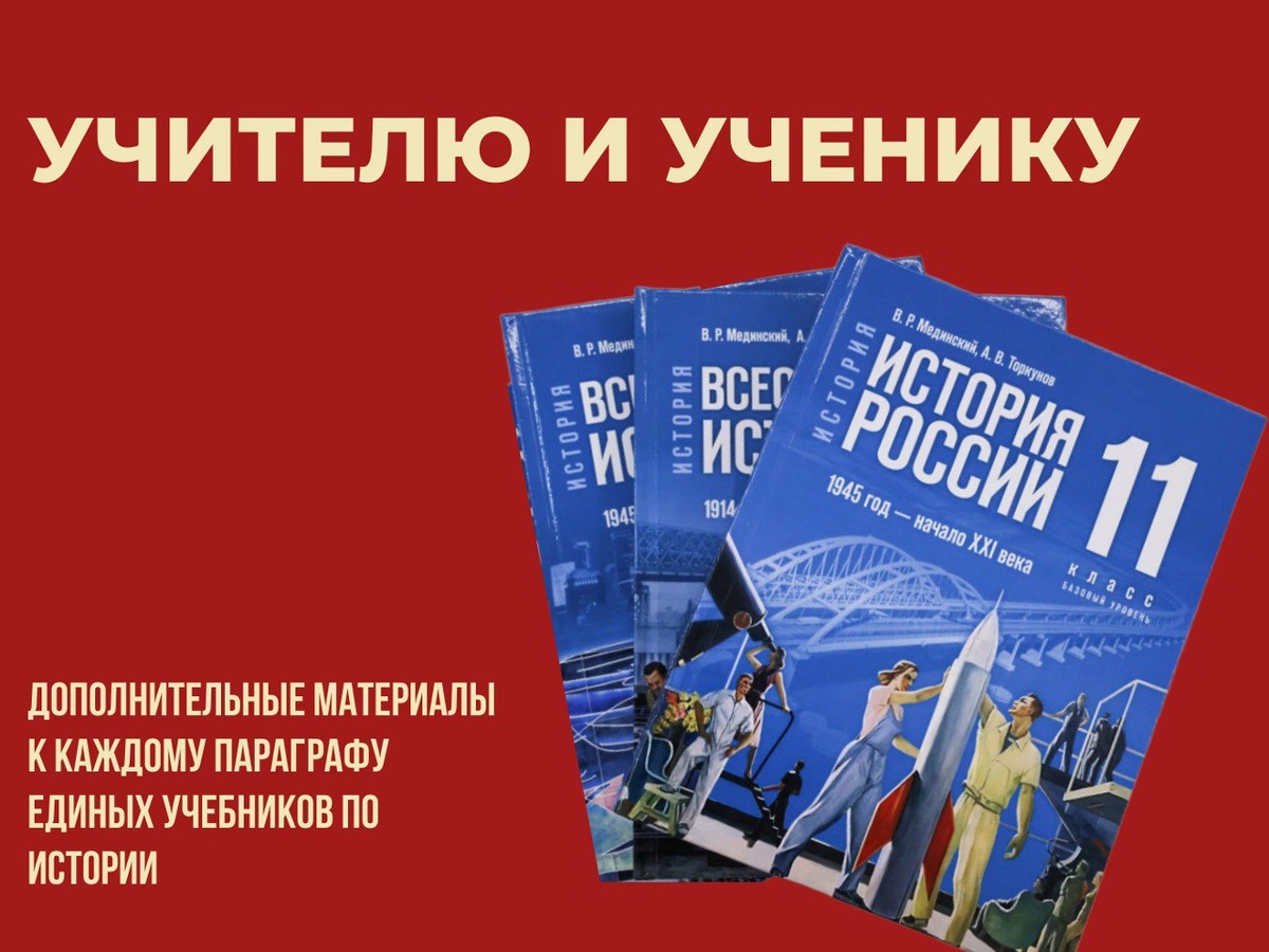 В дополнение к новым учебникам истории заработала платформа «Учителю и ученику» С 1 сентября 2025 года для учащихся 5–7-х классов по всей стране вводится единая линейка учебников истории. Она создана авторским коллективом под руководством помощника Президента РФ Владимира Мединского, ректора МГИМО Анатолия Торкунова и научного руководителя Института всеобщей истории РАН Александра Чубарьяна. Для помощи педагогам и школьникам Российское военно-историческое общество (РВИО) реализует проект «Учителю и ученику». Раздел «Учителю и ученику» создан на федеральном портале «История.рф». Он сформирован по запросу педагогов и представляет собой электронный каталог дополнительных материалов: более 30 000 статей, лекций, видео- и аудиоматериалов, проверочных тестов. Информация структурирована по главам и параграфам единой линейки учебников истории. Внедрен ИИ-помощник, который дает достоверные ответы на исторические вопросы, основываясь на достоверном материале, под которым подписались авторы уч