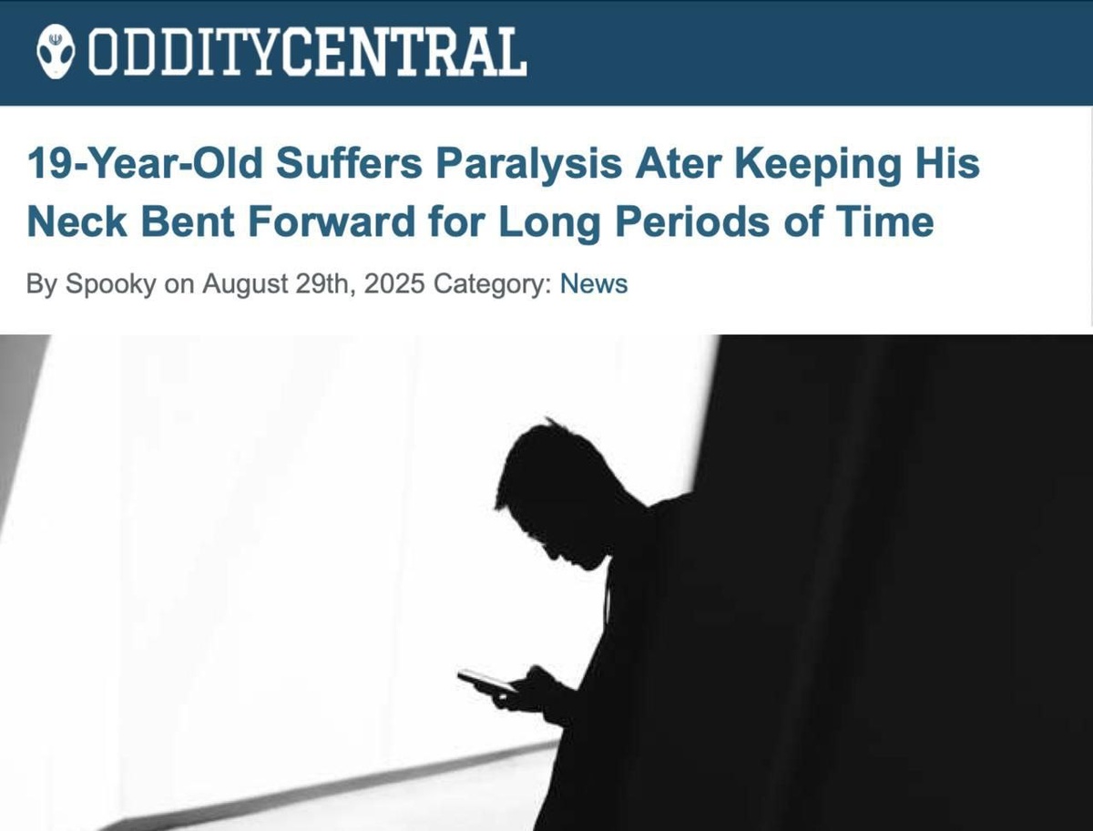 Привет, друзья! Сегодня я хочу обсудить с вами довольно тревожную новость. В Китае 19-летний парень полностью парализован ниже груди из-за частого использования телефона. Постоянный наклон головы привёл к сильному давлению в сосудах позвоночника, из-за чего у него образовался тромб в шейном отделе. Сгусток сдавил спинной мозг и вызвал острую парализацию. Благодаря вовремя проведённой операции тромб удалось успешно удалить. Сейчас парень пытается восстанавливать подвижность. Этот случай напоминает нам о том, как важно следить за осанкой и не допускать длительного неправильного положения головы при использовании гаджетов. Этот инцидент должен стать напоминанием о том, как важно заботиться о своём здоровье и не забывать о правилах безопасного использования технологий.
