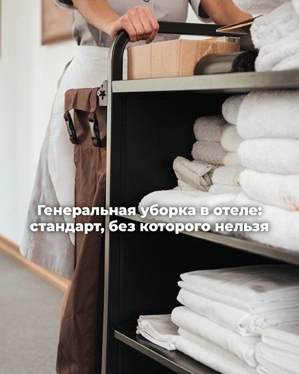 🧹 Генеральная уборка в отеле: стандарт, без которого нельзя Цель такой процедуры проста, но очень важна: ✔️ предоставить гостям первоклассный сервис; ✔️ соблюдать стандарты чистоты номерного фонда; ✔️ подготовка номеров к сезону. Почему это важно? В каждом отеле номера разные: мебель, текстиль, посуда, покрытия — всё требует особого подхода. Поэтому ещё до начала работы объект должен иметь контрольные карты уборки для каждого типа номера. Это пошаговые инструкции: чем, когда и как обрабатывать поверхность, чтобы сохранить номерной фонд в идеальном состоянии. 📌 При правильной ежедневной уборке и выполнении сезонных процедур генеральная уборка нужна всего два раза в год. Но это — настоящая «чистка до основания». В неё входит: ✨ полная стирка постельных принадлежностей и обработка матраса; ✨ влажная уборка мягкой мебели, ковролина, штор; ✨ мытьё окон и стен от потолка до пола; ✨ глубокая очистка ванной комнаты и вентиляции; ✨ уход за дверями, зеркалами, мини-барами и труднодоступными