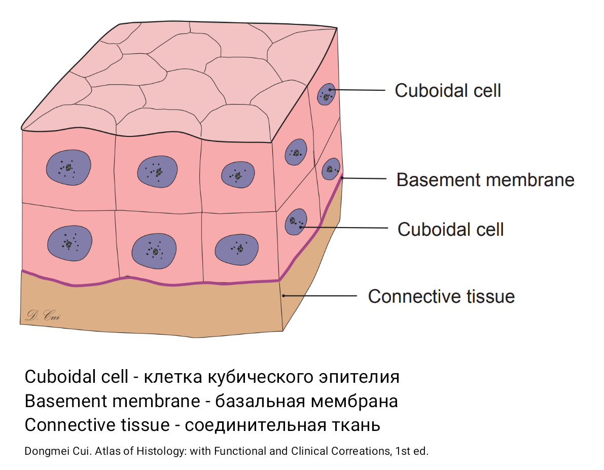 Многослойный кубический эпителий в организме человека встречается редко. О нём обычно не спрашивают на зачётах и экзаменах. Поэтому здесь я соберу коллекцию изображений для любознательных. Как правило, этот тип эпителия выстилает протоки экзокринных желёз и состоит из 2 слоёв, причём оба слоя состоят из клеток кубической формы. Обратите на это внимание, в многослойном призматическом эпителии будет иначе. Многослойность придаёт устойчивость к трению и разрыву. Кстати, это может быть подсказкой. Если вы видите в препарате два слоя кубического эпителия, подумайте об экзокринной железе.