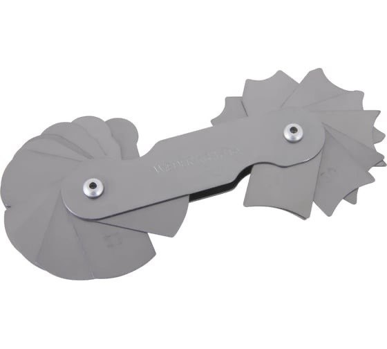 Радиусные шаблоны — это специальные измерительные инструменты, которые помогают быстро и точно определить радиусы на выпуклых и вогнутых поверхностях. Они незаменимы в производстве металлических и пластиковых деталей, при контроле качества, проектировании и монтаже. Все шаблоны выпускаются по ГОСТ 4126-66 и доступны для покупки — как мастерам, так и крупным предприятиям. Шаблоны радиусные представляют собой металлические пластины с вырезами, каждый из которых соответствует определённому радиусу. Обычно они продаются наборами: в одном комплекте может быть от 16 до 32 элементов. Различают: Изготавливаются такие инструменты из нержавеющей стали, что делает их долговечными и точными даже при постоянной эксплуатации. В производстве встречаются разные измерительные приспособления, но радиусные шаблоны ГОСТ — самые удобные. С их помощью можно проверить геометрию деталей, фасонных элементов, отливов, доборов, а также деталей машиностроения. Наличие набора радиусных шаблонов позволяет мастеру