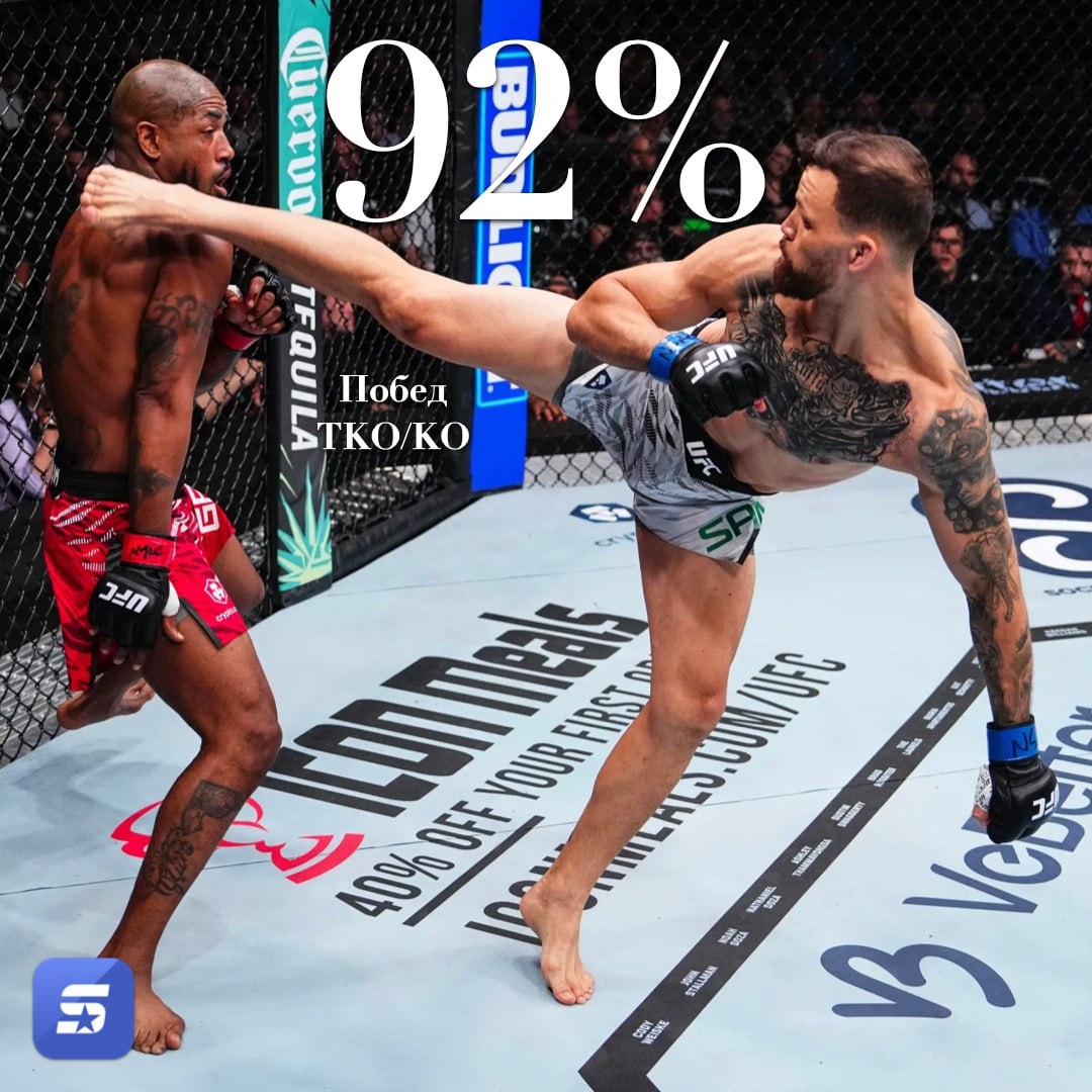 Если Сен-Дени охотится за шеями, то его оппонент готов вырубать всех подряд. 🇧🇷 Маурисио Руффи — боец с убийственным арсеналом! 💥 92% своих побед он завершил ТКО/КО. Один точный удар — и ночь для соперника закончена. #UFCParis