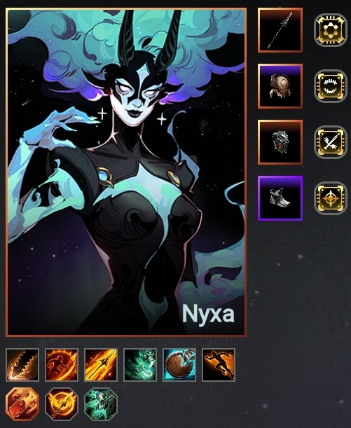 Представленная ниже информация - субъективное мнение автора. Билд используется в основном на соло ганках. Можно использовать в небольших стычках, однако важно помнить, что активная способность Никс можно и проблем союзникам создать, в основном следует ее использовать, чтобы выжить и выйти или если вы атакуете с фланга в одиночку. Билд хорошо себя чувствует против физического урона. Особенность Никс, после изменения ее пассивной способности, это конвертация физического урона от обычных атак в магический, при этом с каждым ударом понижая магическое сопротивление цели на 4% на 4 сек. до 10 стаков, суммарно 40%. Шлемом снижаем маг. сопротивление противника на 50%, в следствии чего уже со старта PvP начинаем больно бить с руки, как бонус наносим 50% маг урона в АОЕ вокруг себя (не забывайте что этот урон так же увеличивается, как с шлема так и с каждой обычной атаки, ведь мы понижаем резист). С телом все просто, средний разовый урон, аура на понижение сопротивления к урону на 20% и ба