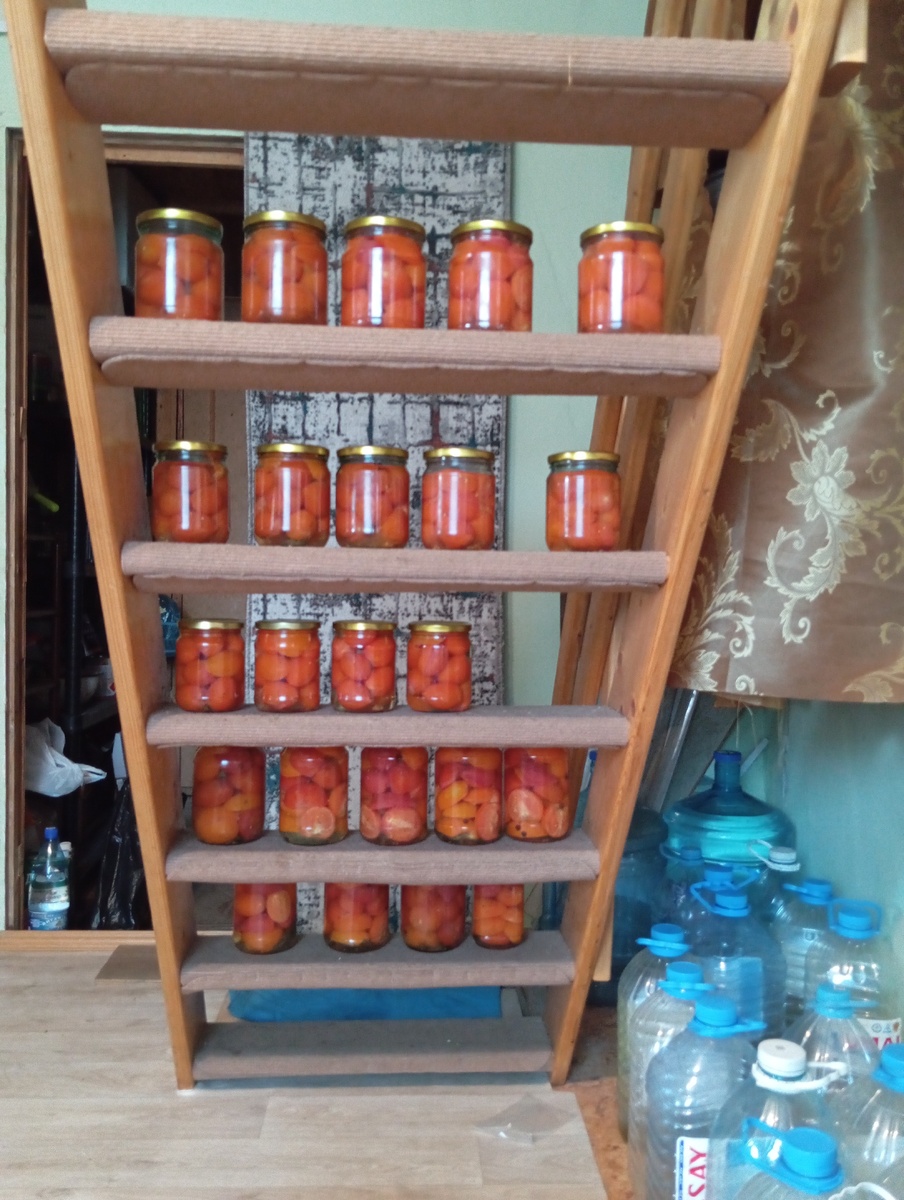 «Резаные томаты», рецепт от соседки Лены. На 1-литровую банку: Нарезанные пополам среднего размера помидоры, если покрупнее — на 4 части, мелкие — целые, но обязательно везде вырезаем место плодоножки. Складываем в банку, заливаем водой, ставим на стерилизацию на 10-15 минут. Вынимаем из бани, добавляем 1 ч. ложку «с горкой» 9% уксуса, закатываем, переворачиваем, укутываем до полного остывания.
