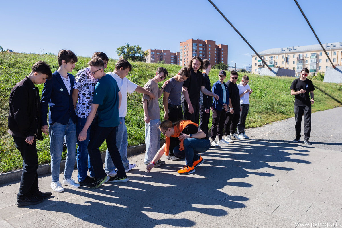 Первый творческий тренинг на сплочение провели сегодня первокурсники ПензГТУ вместе с командой тьюторов университета. «Мы перенесли традиционный верёвочный курс с территории 5 корпуса в исторический центр Пензы, – рассказывает руководитель тьюторского корпуса, студентка 4 курса Софья Буйлакова. – Кроме того, мы дополнили формат творческой составляющей: теперь ребятам нужно не только пройти успешно все командные станции, но и, запечатлев всю группу на фоне городских пейзажей, создать свой первый фотоколлаж-воспоминание о старте своей студенческой жизни в вузе». Отличная погода, интересные задания и неформальное общение, по мнению организаторов, позволяет решить задачи сплочения одногруппников, которым в течение следующих 4 лет предстоит совместно грызть гранит науки и, возможно, неоднократно вместе проводить время на улицах Пензы. «Мы стремились так подобрать локации, чтобы познакомить с главными достопримечательностями губернского города, – делится с нами Руслан Валиуллин. – Просто оч