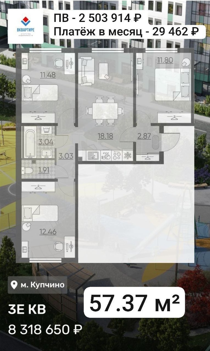 Кейс 🔑 3Е КВ, Пушкинский р-н 🌍🚗 Ⓜ️ Купчино, 15 минут транспортом ⏳🚌 Ⓜ️ Шушары, 20 минут транспортом ⛤🚐 Расчёт стоимости по семейной ипотеке от застройщика 💳🏠: Цена квартиры - 8 318 650 ₽ 💸 ПВ - 2 503 914 ₽ 💰 Платёж в месяц - 29 462 ₽ 📈 Ставка - 4,5% 📊 Срок, лет - 30 🎯 Преимущества ✅ ✨ Рядом скоростная трамвайная линия ✉️ Городская регистрация 🌞 Большие окна 🚆 Близко выезд на КАД 🛒 Коммерция 🧑🤝🧑 Функциональные планировки, в том числе евро Описание объекта 🏡 Рядом с ЖК введен в эксплуатацию и готовится к открытию современный трехэтажный детский сад 🏫, идет строительство комбинированного детского сада и начальной школы 📚👶, общеобразовательной школы на 1650 мест 📚, предусмотрено строительство детской и взрослой поликлиник 🏥. Есть планы по созданию своей парковой зоны 🌳 и строительству линии скоростного трамвая 🚋. Это уютный среднеэтажный жилой комплекс комфорт-класса в п. Шушары Пушкинского района. Проект ориентирован на молодых и активных людей, стремящихся