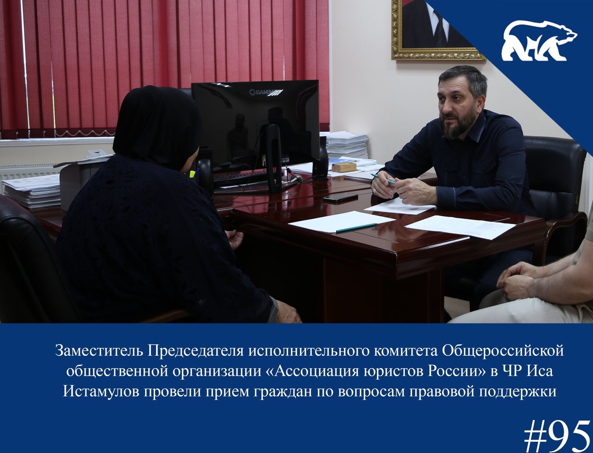 🚩Сегодня в Региональной общественной приемной Председателя «Единой России» Д.А. Медведева прием граждан по вопросам правовой поддержки провел заместитель Председателя исполнительного комитета Общероссийской общественной организации «Ассоциация юристов России» в ЧР Иса Истамулов. ⠀ ✅На приём обратились с вопросами разнопланового характера: спорные вопросы по жилью, финансовые вопросы из-за проблемы с ипотекой, выплаты по кредитам и прочие. ⠀ 💯По всем обращениям даны соответствующие консультации для дальнейших шагов, а также оказана помощь по подготовки документов для подачи в соответствующие инстанции. ⠀ #ЕдинаяРоссия #ЕРпомогает95 #ЕР95