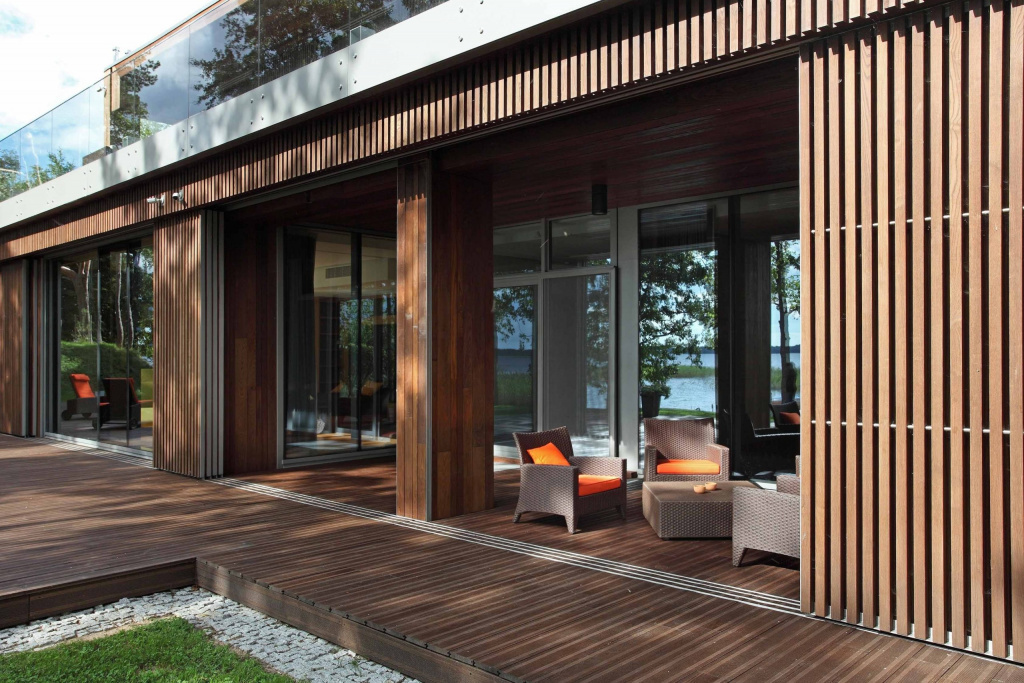 Дерево используется на открытом воздухе, украшая фасады, дорожки, террасы, лоджии своей естественной красотой, прочностью. Устойчивость к влаге, гниению, насекомым делает ее идеальным материалом для фасадов, где она способна противостоять стихии, сохраняя при этом свою эстетическую привлекательность. Дорожки, террасы из дерева отличаются долговечностью, стабильностью, создавая привлекательные открытые пространства, выдерживающие интенсивное пешеходное движение, переменчивые погодные условия. При использовании материала в лоджиях создается теплая, уютная атмосфера, превращающая эти помещения в уютные укромные уголки, органично сливающиеся с природой.