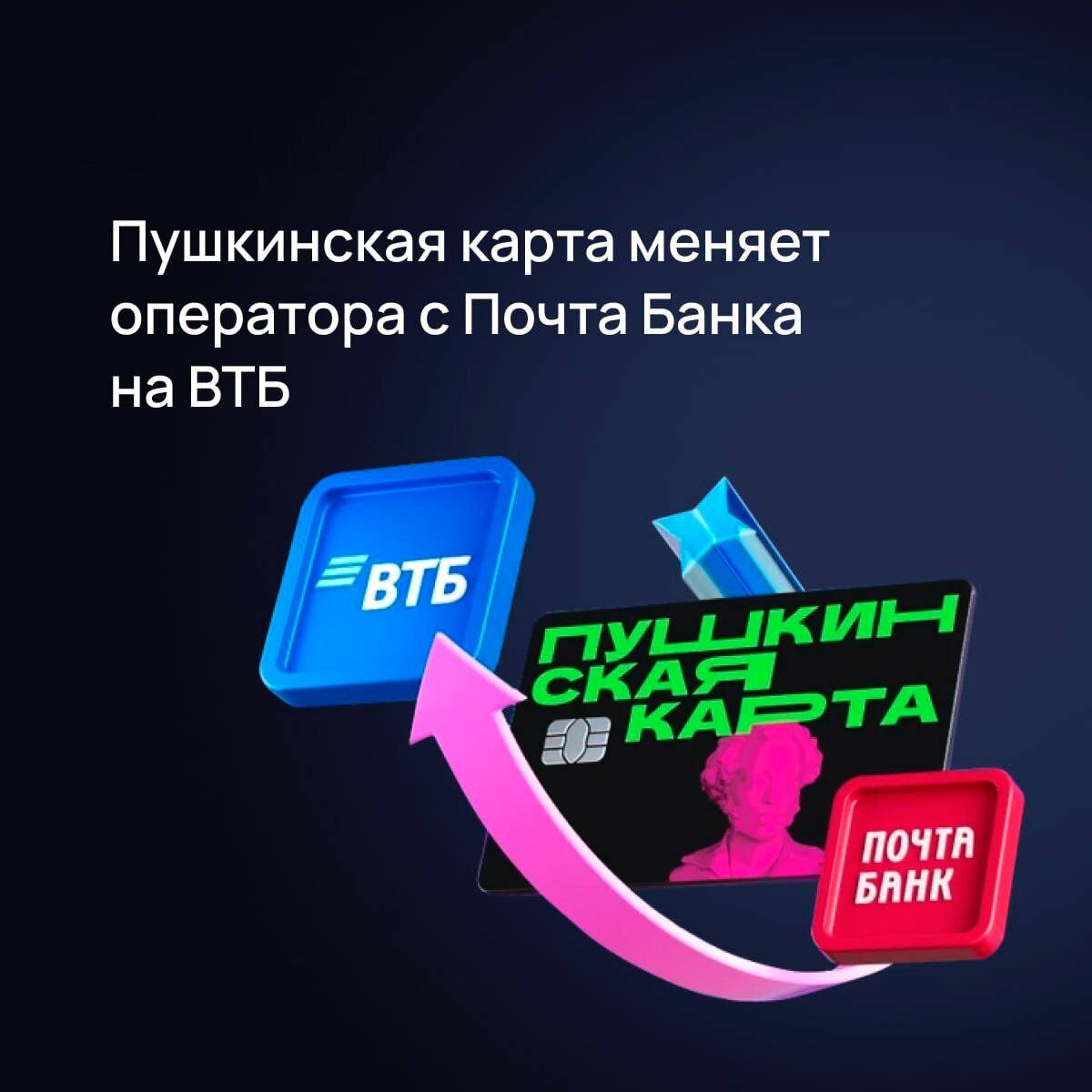 ⚡️ Пушкинская карта меняет оператора с Почта банка на ВТБ