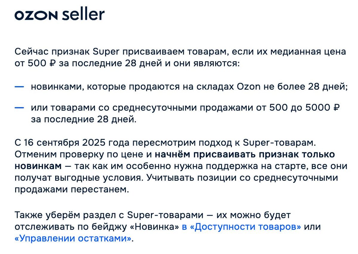 OZON отменил Super-товары