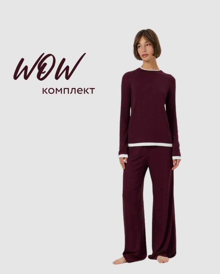 Вау-комплект, который вы так ждали, теперь в глубоком оттенке «Бургундия». Его уникальность - в многообразии стилизаций. Идеальное решение как для уютных домашних образов, так и для уверенных выходов в свет. Дополняйте аксессуарами и вуаля - классный образ готов. - комплект Больше новинок ищите на сайте markformelle.com и в фирменных магазинах сети.