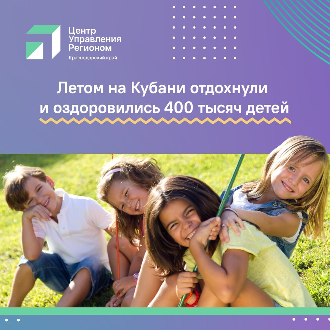 Летом на Кубани отдохнули и поправили здоровье около 400 тысяч детей. Власти края приложили усилия, чтобы сделать отдых для каждого ребёнка разнообразным и запоминающимся. Подробнее об этом читайте в карточках.
