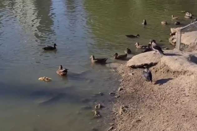 Симферопольские вороны охотятся за маленькими утятами в парке им. Гагарина