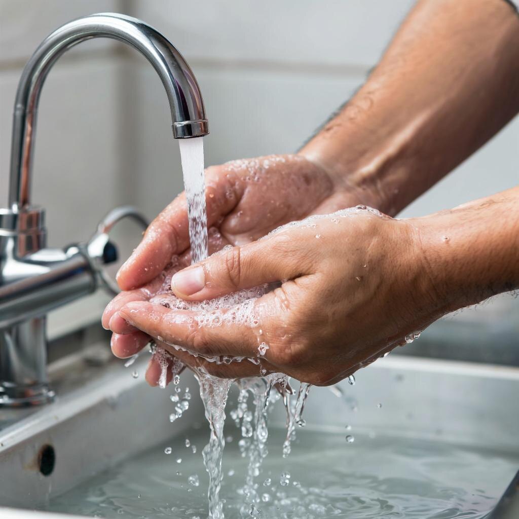 Научить ребёнка правильно мыть руки – задача непростая, но чрезвычайно важная. Гигиена рук защищает детский организм от множества болезней и инфекций, включая грипп, простуду и кишечные расстройства. 🦠 Когда нужно мыть руки? ✅ Перед едой и приготовлением пищи. ✅ После посещения туалета. ✅ После контакта с животными. ✅ После кашля или чихания. ✅ После возвращения домой с улицы. ✅ Если руки грязные или испачканы. Как правильно мыть руки? 1. Смочить руки тёплой водой. 2. Намылить мыло и равномерно распределить его по ладоням, пальцам и ногтям. 3. Тщательно потереть ладони друг о друга круговыми движениями. 4. Промыть промежутки между пальцами и под ногтями. 5. Хорошо смыть пену чистой водой. 6. Высушить руки чистым полотенцем или одноразовой салфеткой. Советы родителям: 💧 Используйте жидкое мыло с дозатором, чтобы избежать распространения бактерий. 🧽 Учите ребёнка мыть руки минимум 20 секунд. Можно петь короткую песенку, пока моете руки, чтобы было веселее. 🩺 Объясните важность мытья