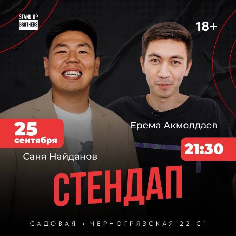 Стендап концерт на двоих 25 сентября✨ Выступят 2 опытных комика со своей самобытной харизмой: 🎙️Саня Найданов - хорошо знакомый нашим гостям финалист Камеди Баттл, Лиги городов и Высшей лиги КВН. 🎙️Ерема Акмолдаев - участник Открытого микрофона на ТНТ и OpenMic VK. В общем, чего тут думать - нужно брать билеты! Они уже в продаже по сссылке🔗