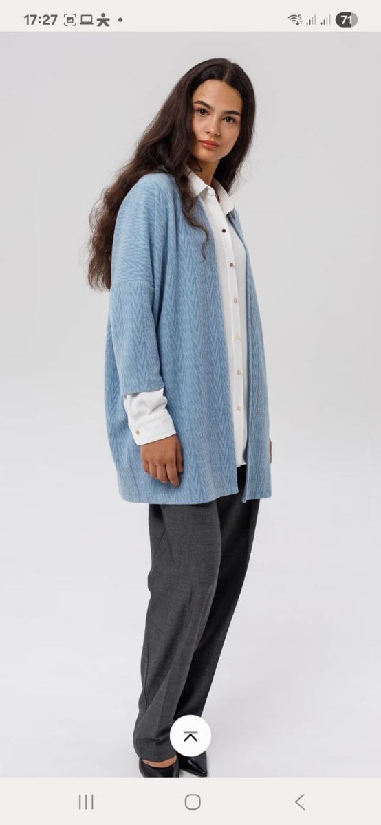 Этот кардиган — воплощение нежности и элегантности. Он станет вашим верным спутником в прохладную погоду, а в этом сезоне будет особенно популярен. В нашем ассортименте представлено три модных цвета (голубой, кремовый, бежевый) , а размерный ряд включает модели размеров S, M и L.