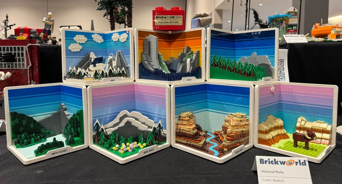 Национальные парки в кубиках от RebelLUG! 🏞️ Участники сообщества создали потрясающую коллекцию диорам национальных парков США и Канады в формате 16x16. Вдохновением послужили стилизованные значки парков и техника градиентов из набора «Рассказы космической эры». Каждый куб — это личное воспоминание строителя о посещении парка. Коллаборация уже получила награду «Лучшее использование цвета» на BrickWorld Chicago 2025! Источник: BrickNerd